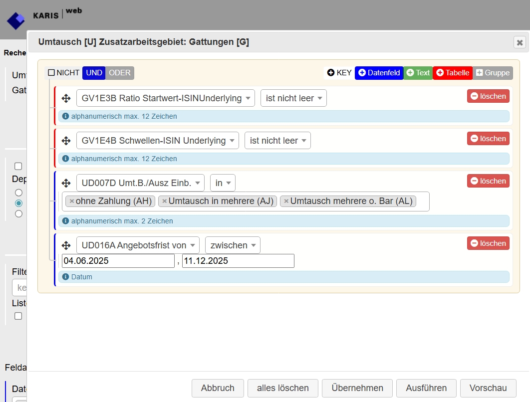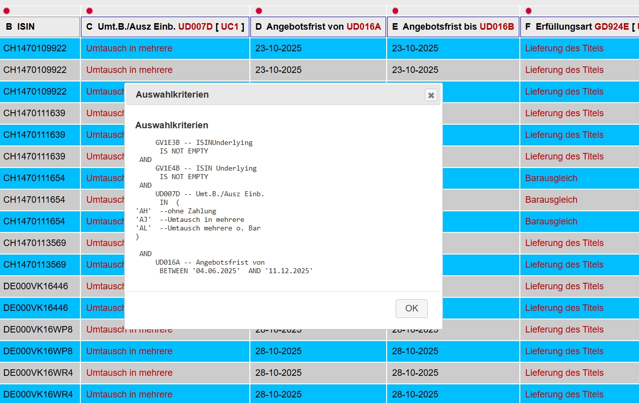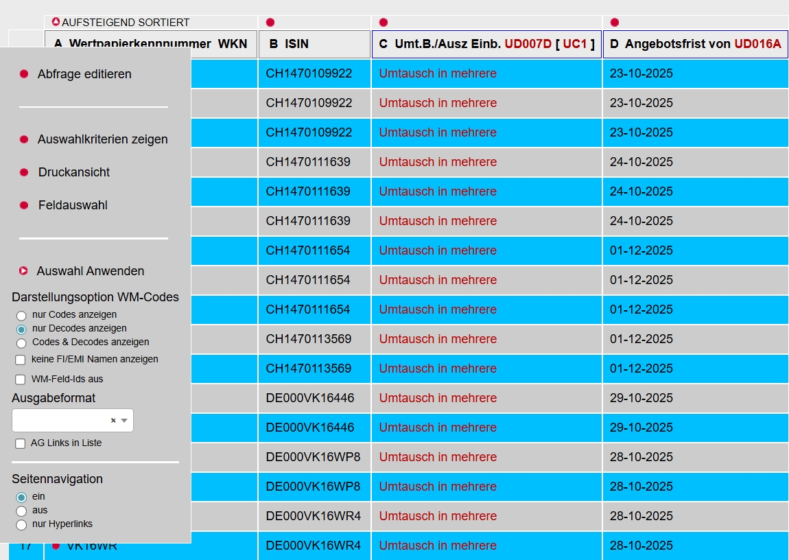- skalierbar: Im Einsatz für 26 WM-Produkte, kundenindividuelle Feldprofile möglich, Filterung nach Arbeitsgebieten, Kennnummernlisten (WKN oder ISIN) und Feldnamen automatische Eildienstverarbeitung